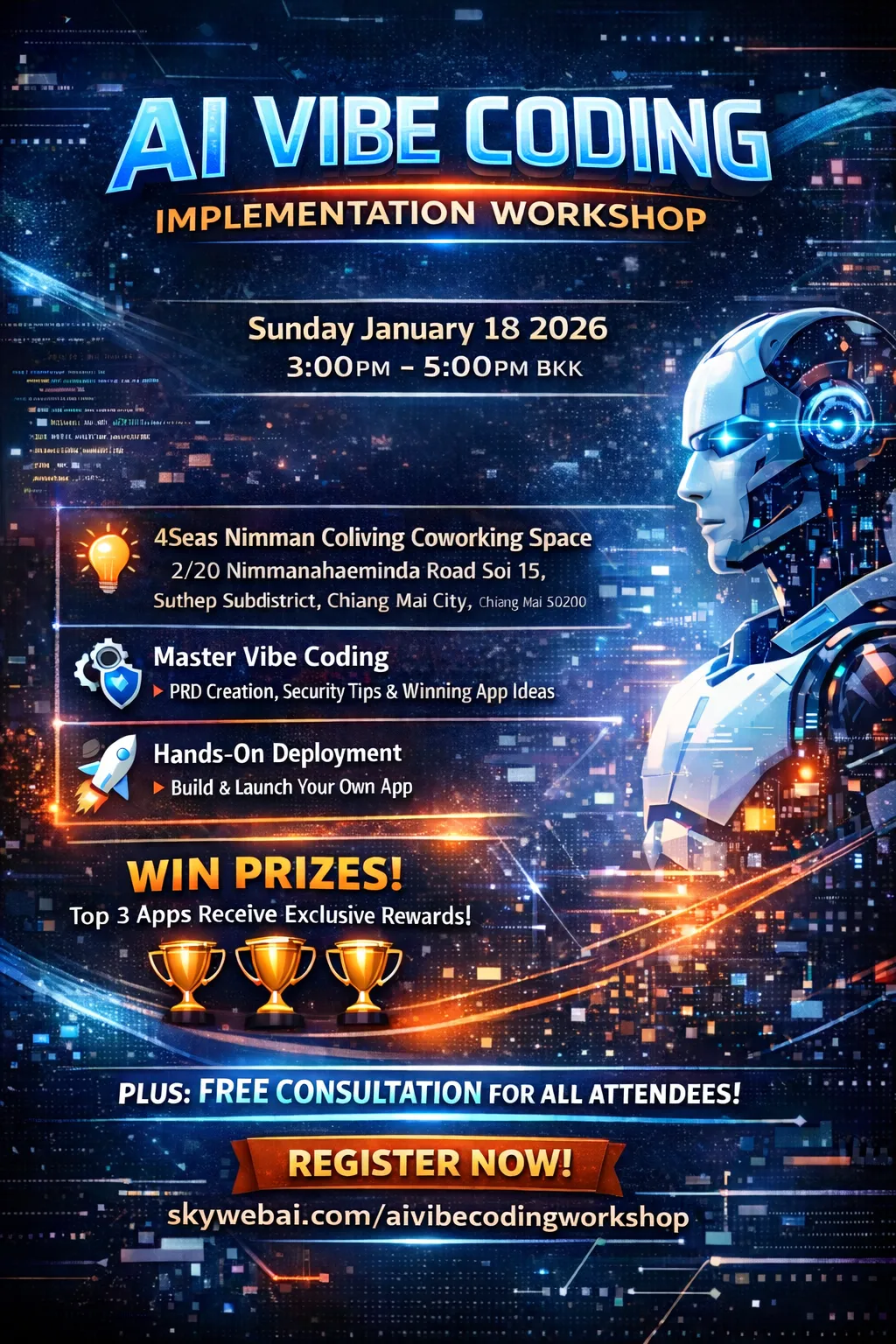 FREE WORKSHOP TRAINING IN CHIANG MAI, THAILAND TO IMPLEMENT AI + VIBE CODING...